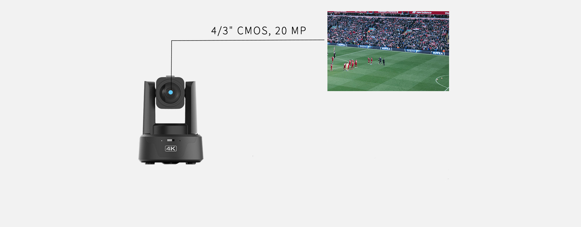 Broadcast-grade UHD ImagingFitted a 4/3″ CMOS sensor, 20 MP lens supports high quality broadcast-grade dual-camera output up to 4K P60/P59.94.